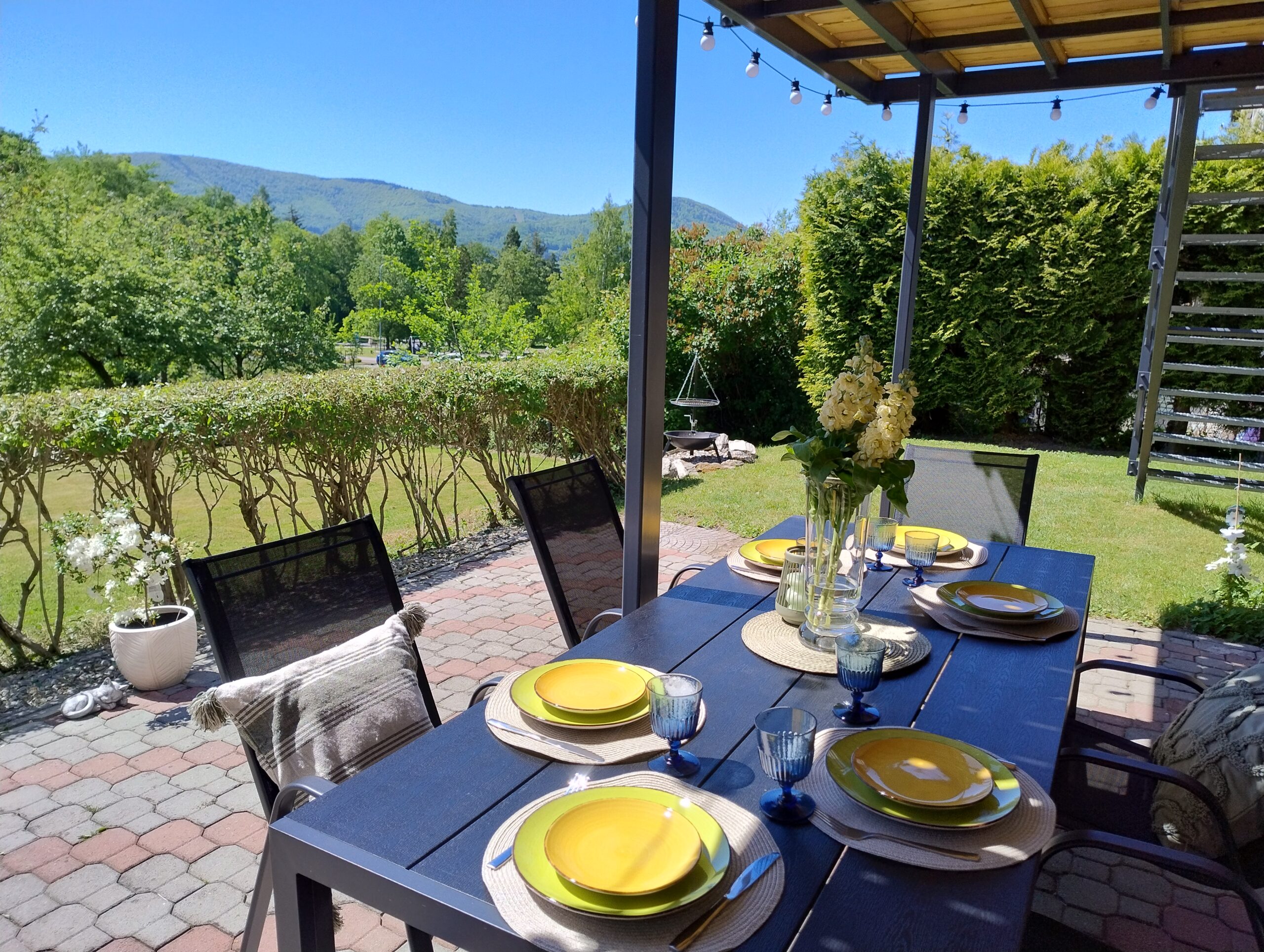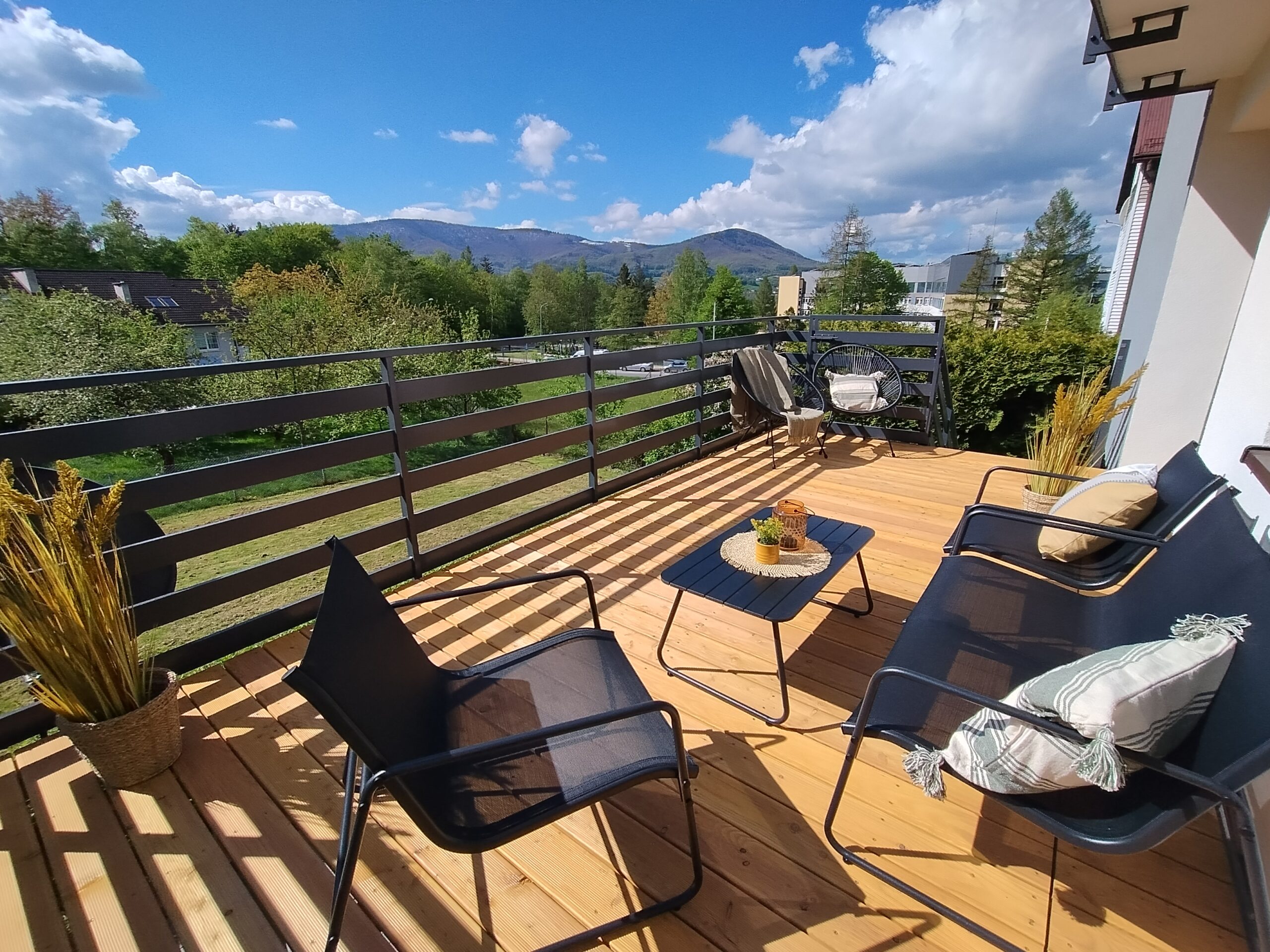 Dwa tarasy zapewniają niesamowite widoki na otaczającą przyrodę, idealne na poranną kawę lub wieczorny relaks na świeżym powietrzu.